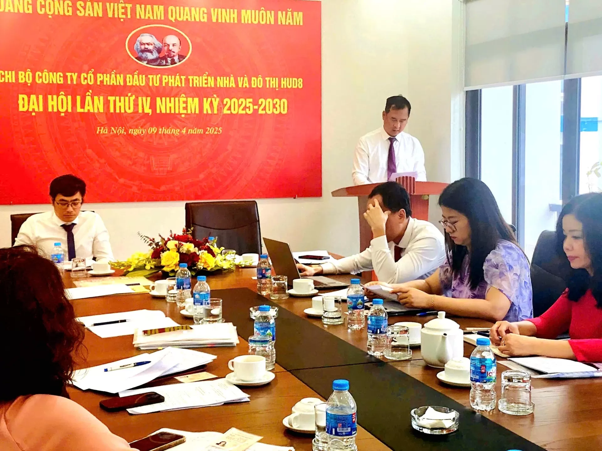 Sáng ngày 09/4/2025, Chi bộ Công ty cổ phần Đầu tư phát triển nhà và đô thị HUD8 đã tổ chức thành công Đại hội Chi bộ lần thứ IV, nhiệm kỳ 2025-2030.