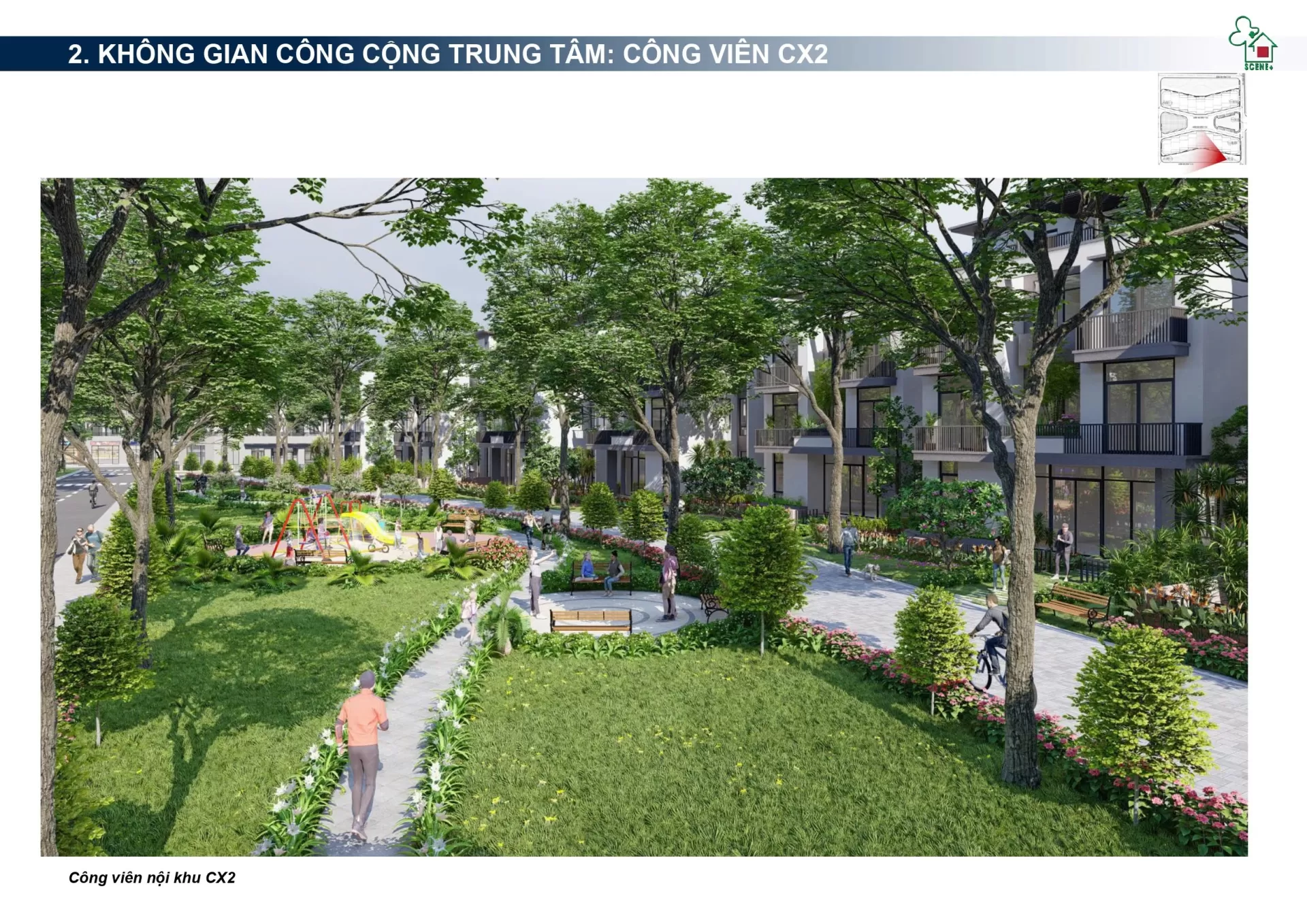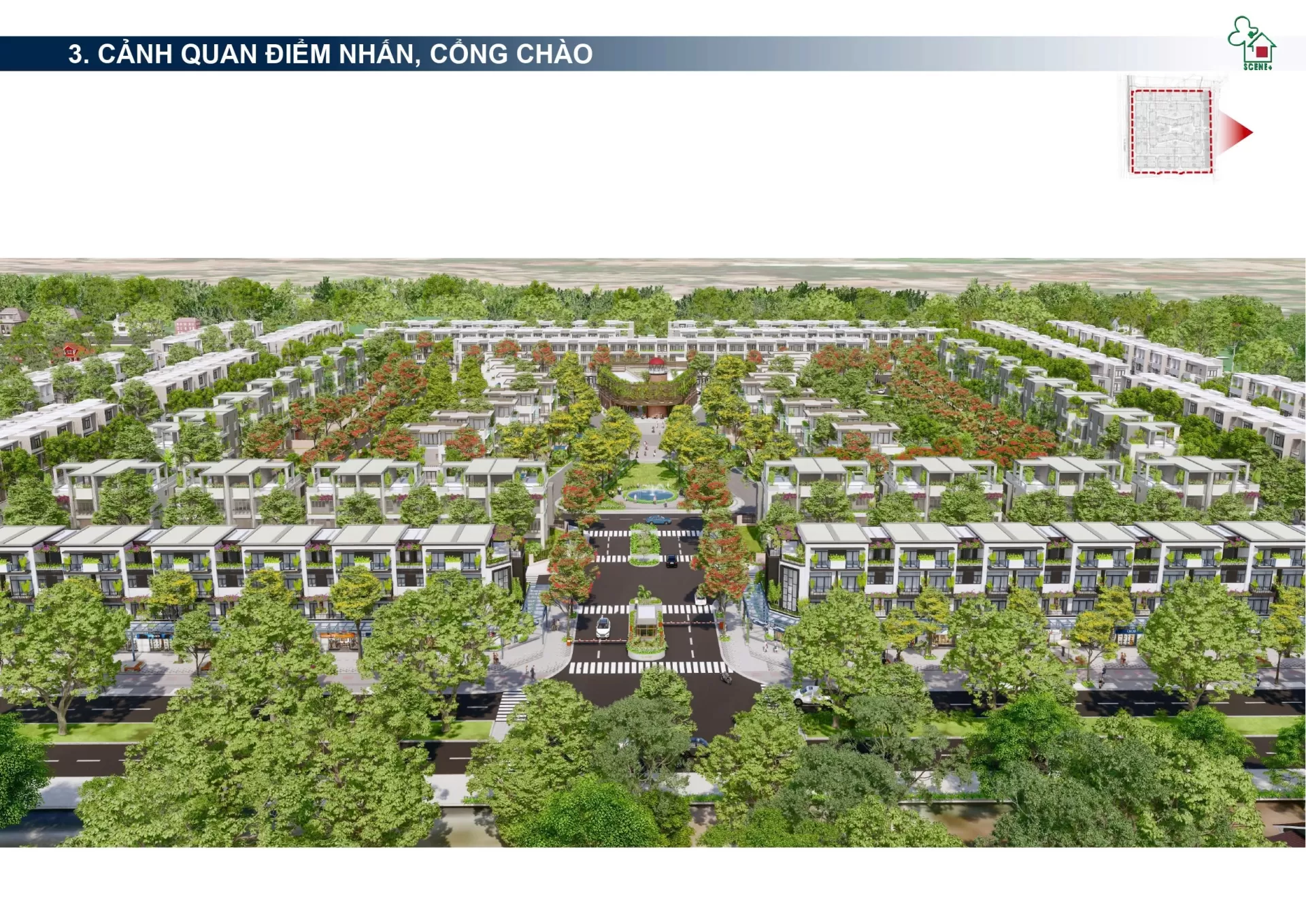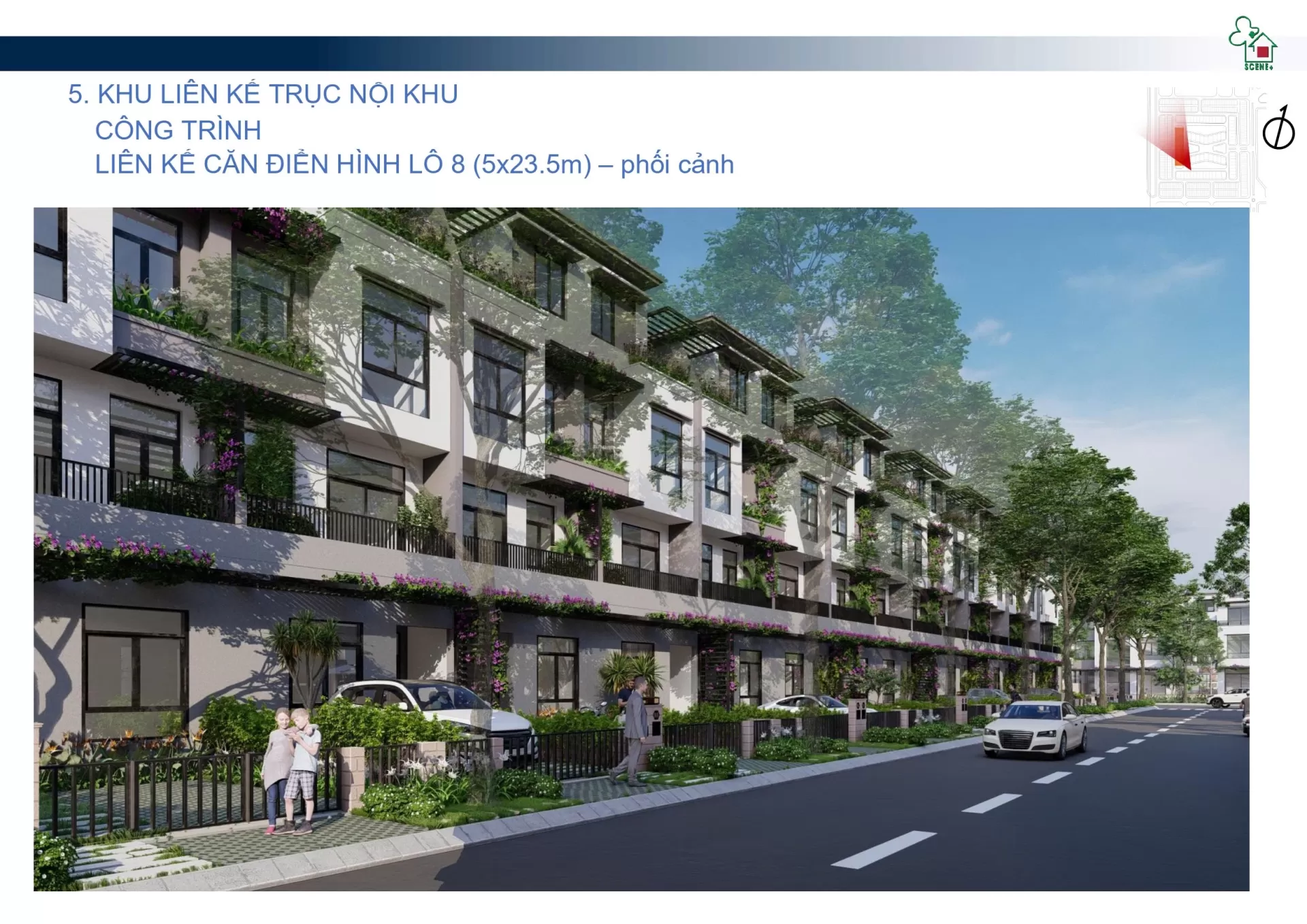 - Quy mô: 116.700 m2 đất, 388 căn nhà ở thấp tầng liền kề.