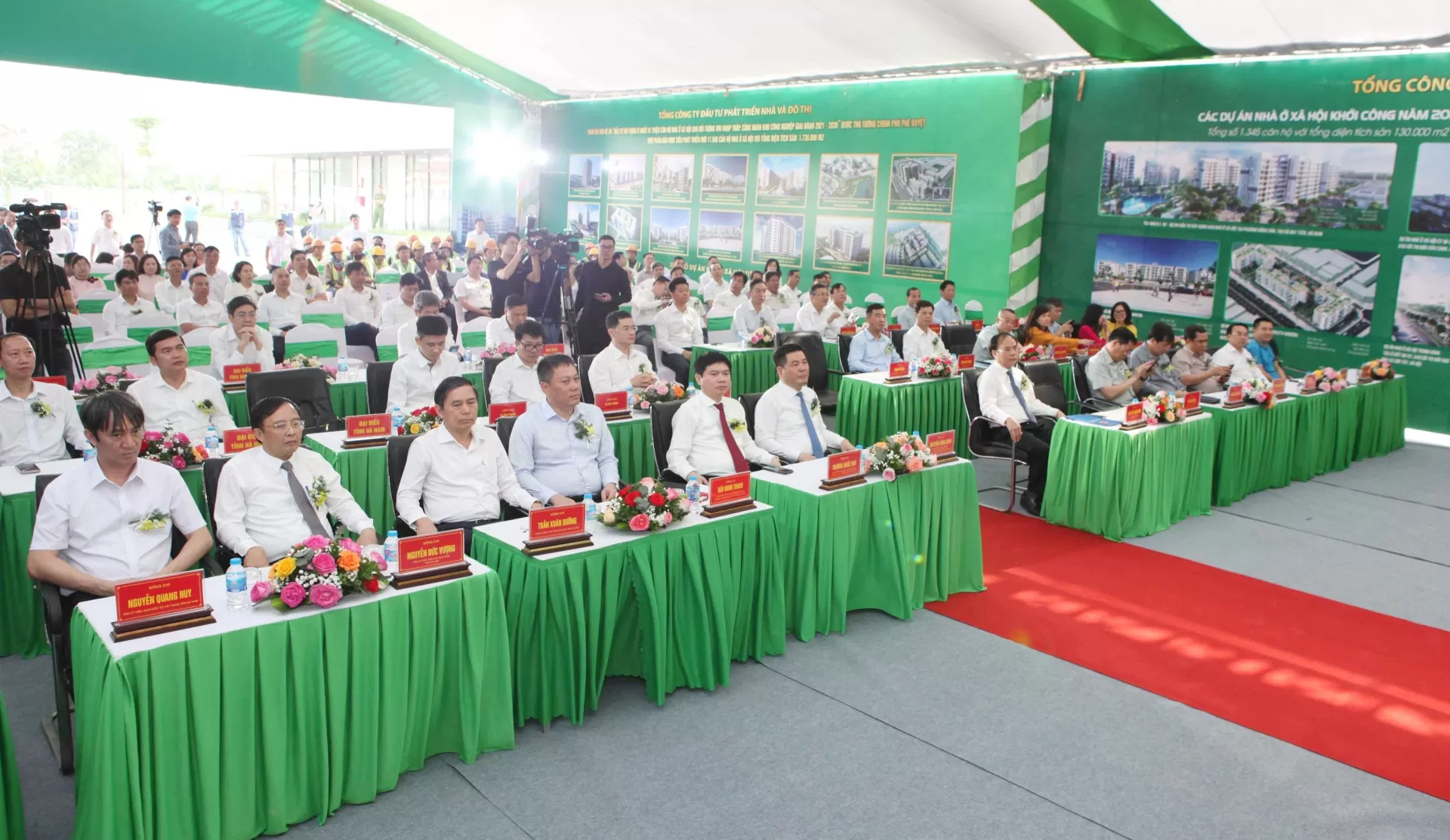 Nhằm thiết thực chào mừng kỷ niệm 50 năm ngày giải phóng miền Nam, thống nhất đất nước (30/4/1975-30/4/2025), trong không khí thi đua sôi nổi chào mừng đại hội Đảng các cấp tiến tới Đại hội Đảng toàn quốc lần thứ XIV, thực hiện nội dung yêu cầu tại công điện số 33/CĐ-TTg ngày 07/4/2025 của Thủ tướng Chính phủ, được sự đồng ý của Lãnh đạo Bộ Xây dựng và Lãnh đạo Tỉnh ủy, UBND tỉnh Hà Nam, ngày 19/4/2025, Tổng công ty Đầu tư phát triển nhà và đô thị (HUD) tổ chức Lễ khởi công xây dựng tòa nhà B1, B2 thuộc Dự án đầu tư xây dựng Khu nhà ở xã hội tại phường Đồng Văn, thị xã Duy Tiên, tỉnh Hà Nam.