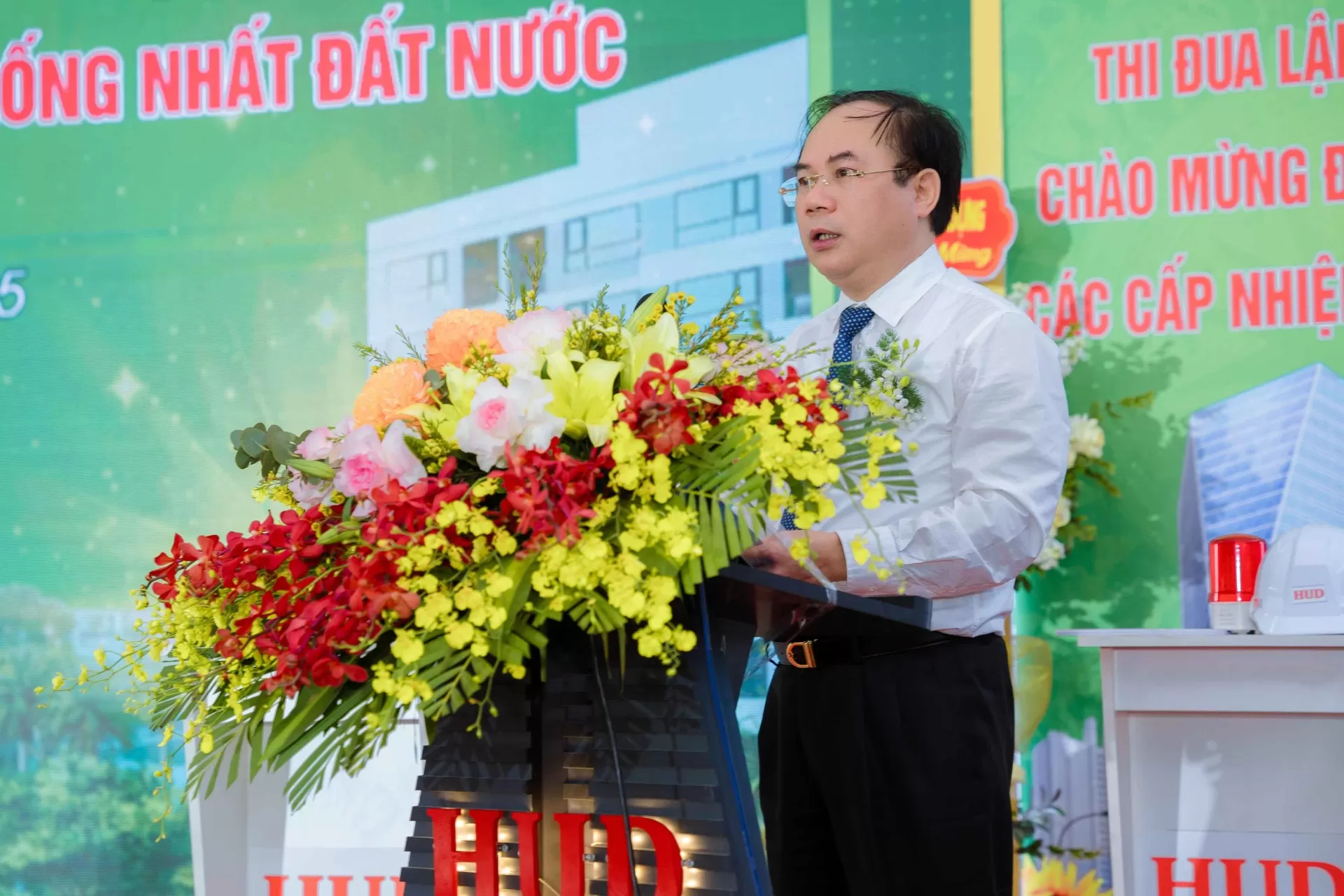 Phát biểu chỉ đạo tại Lễ khởi công, đồng chí Nguyễn Văn Sinh - Phó Bí thư thường trực Đảng ủy, Thứ trưởng Bộ Xây dựng biểu dương những kết quả mà Tổng công ty đã đạt được trong việc triển khai thực hiện các dự án khu đô thị mới và nhà ở nói chung, các dự án phát triển nhà ở xã hội nói riêng; đồng chí tin tưởng với sự quyết tâm, đoàn kết của tập thể lãnh đạo, CBNV Tổng công ty HUD, các dự án Tổng công ty đang triển khai sẽ đảm bảo tiến độ, chất lượng, hoàn thành tốt nhiệm vụ được Đảng, Nhà nước giao phó.